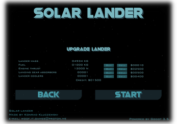 Before each mission, visit the shop to buy fuel, shock absorbers, coolers, or upgrade your engine for more thrust - without increasing fuel consumption. But be careful—every extra item adds weight to your lander, and sometimes a lighter craft is easier to control.